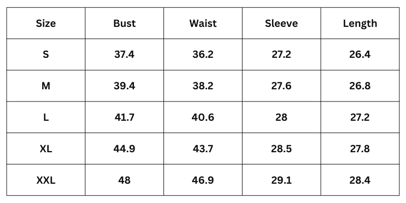 Size Chart (Inches):