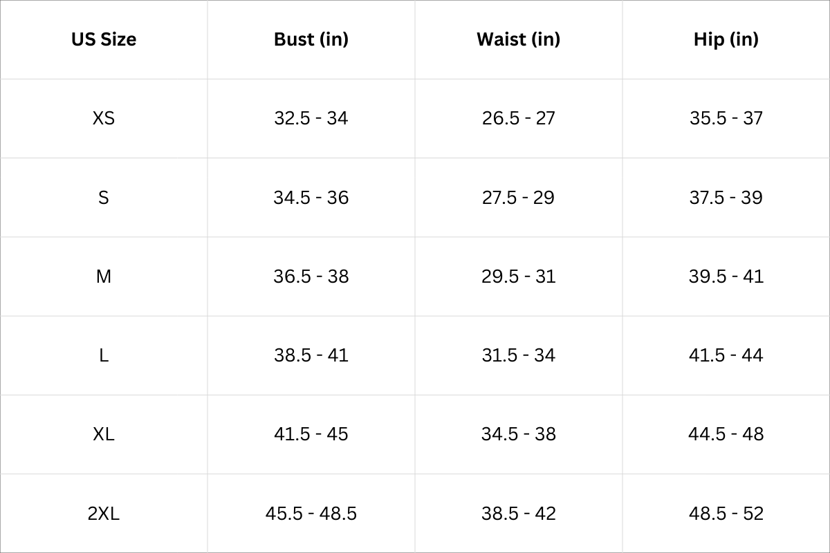 Size Chart (Inches):