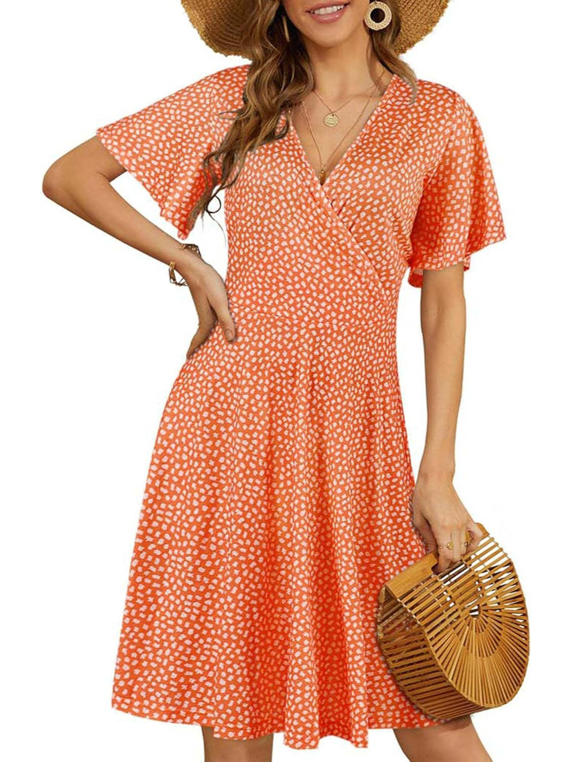 Design: Features a wrap V-neck, ruffle short sleeves, and an A-line cut for a graceful, comfortable fit.