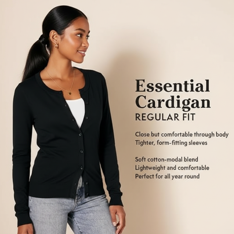 The softness of the cotton-modal blend ensures you stay comfortable throughout the day without sacrificing style. The classic button-down front allows you to control how much coverage you need, making it adaptable for different occasions. Whether worn open or buttoned up, the cardigan remains a flattering fit. And with its machine-washable care instructions, it is as easy to maintain as it is to wear. Add this versatile piece to your collection for effortless style year-round.