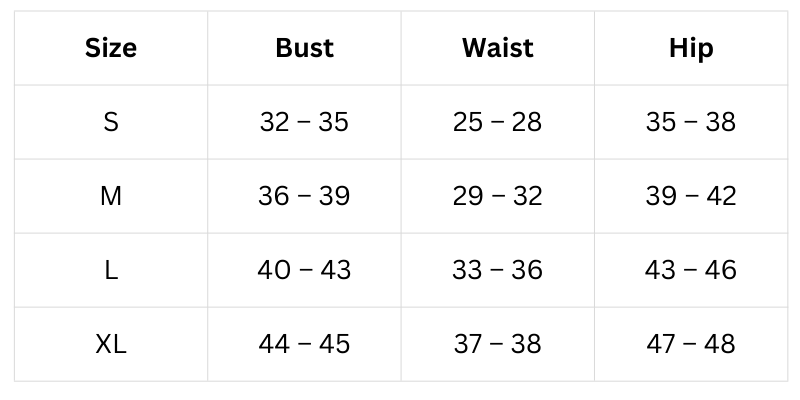 All measurements are designed to maintain balance between the top and bottom pieces for a cohesive look.