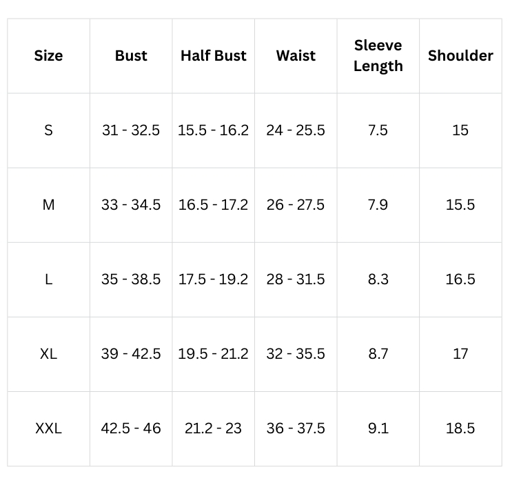 Size Chart(inch):