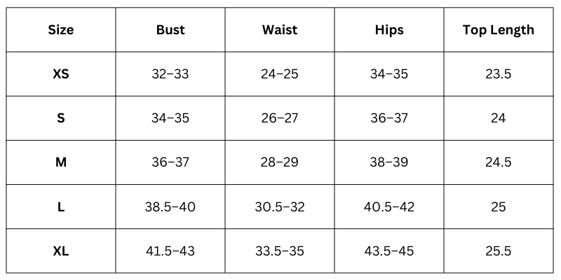 Size Chart (Inches):