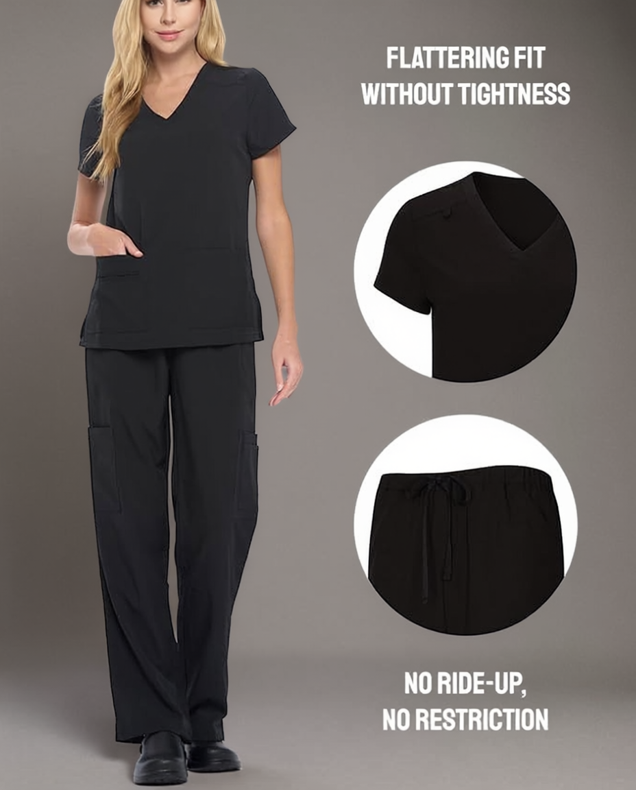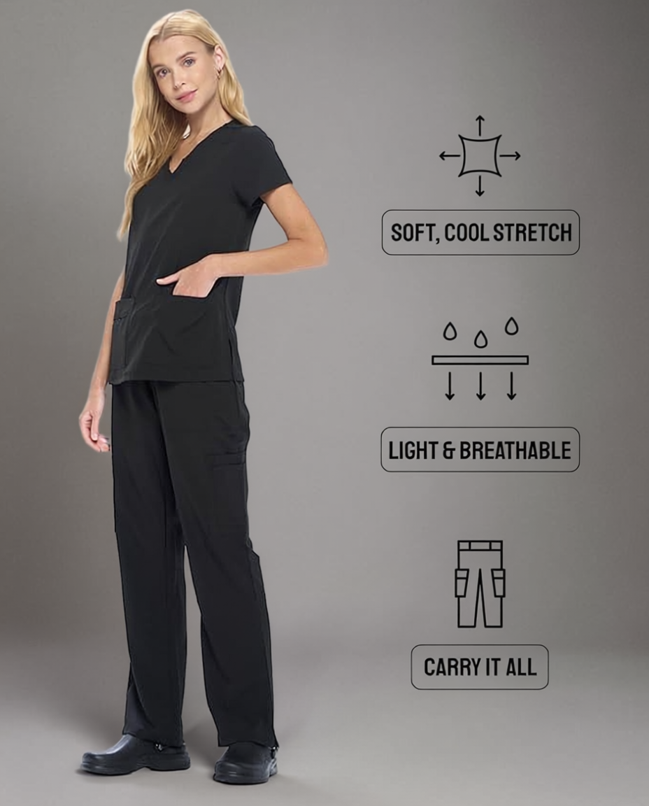 The Top Cargo Scrub Set delivers reliable performance and organization for daily professional wear. With multiple storage compartments, wrinkle-resistant fabric, and a neat appearance, it balances practicality with everyday function.