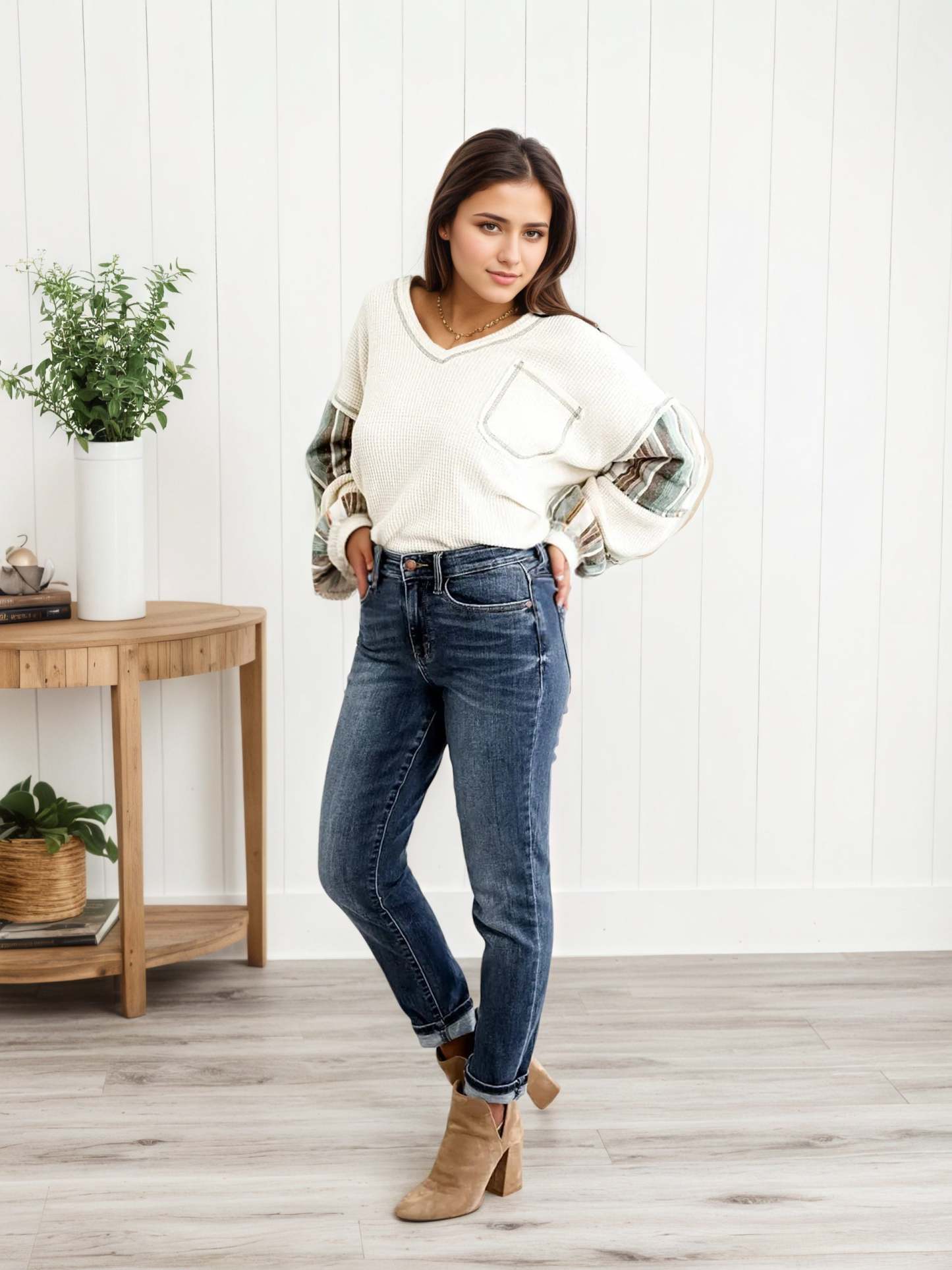 These jeans are the holy grail of denim and the epitome of trendy meets comfort! These have a relaxed fit! That is one of our favorite cuts here because it flatters ALL figures, is one of the trendiest styles, and is so comfortable!