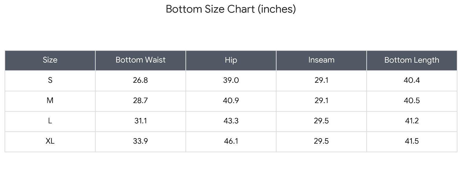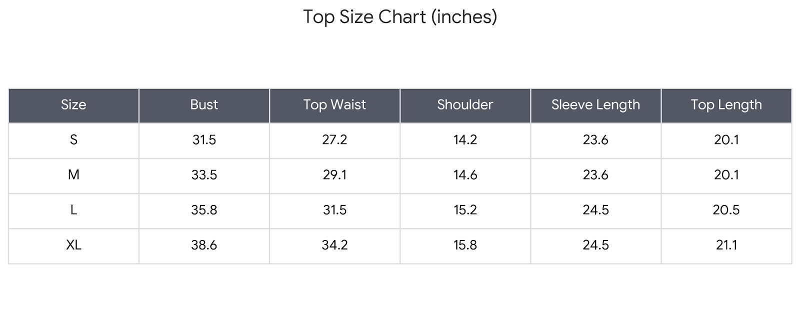 Size Charts(inches):