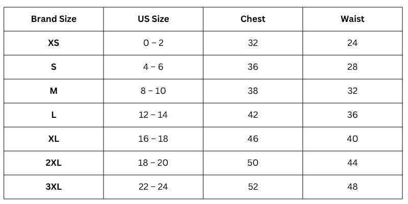 Size Chart (Inches):